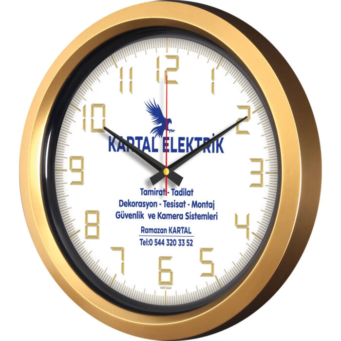 Ebat: 40 cm Çerçeve: Plastik Kadran: Bristol Saniye: Akar Cam: Mineral Baskı: Ofset, Dijital Koli Adeti: 10 Not: Altın Varak